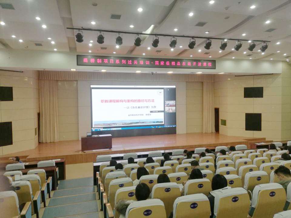 12月13日下午, “国家级精品在线开放课程”揭榜制过关培训项目在学校举行。国家级教学名师、金华职业技术学院医养健康专业群主任胡爱招教授做“课程重构与序化”主题培训。揭榜“国家级精品在线开放课程”的五个团队全体成员,各系教学副主任、科长参加培训。