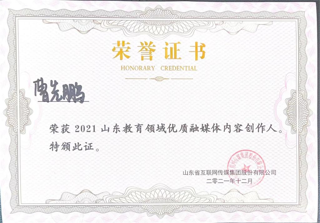 12月24日,由山东省互联网传媒集团主办的2021山东教育品牌建设与传播管理研讨会在泰安召开,聊城职业技术学院荣获2021山东最佳声誉高校殊荣,党委宣传部曹先鹏、赵璇荣获2021山东教育领域优质融媒体内容创作人。