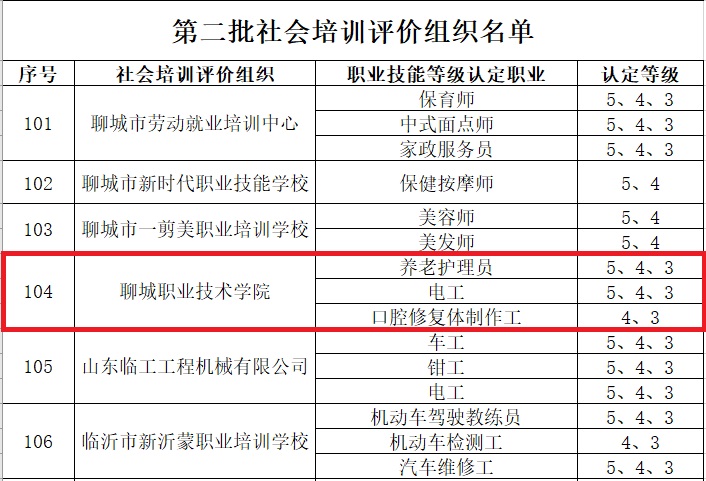 1月13日,山东省职业技能鉴定指导中心网站公示《第二批职业技能等级认定社会培训评价组织的通知》,聊城职院获批山东省职业技能等级认定社会培训评价组织,我院申报的养老护理员、电工、口腔修复体制作工三个职业工种全部入选,可面向社会开展职业技能等级认定培训及评价工作。