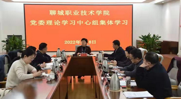 2月8日上午,聊城职业技术学院党委理论学习中心组进行集体学习,党委书记靳凤莲主持会议并讲话。党委副书记、院长徐龙海,院领导赵存吉、吕学德、高杉、刘雪巍、徐洪祥参加学习,孙凌云列席会议。