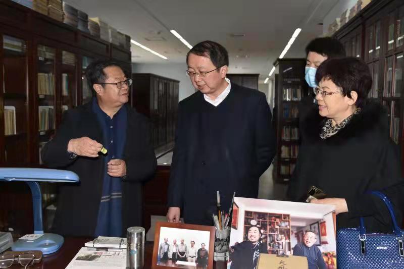 在山东师范大学,高杉一行先后考察了公安处、信息中心、图书馆、体育场馆、学生公寓、餐厅。座谈中,山东师范大学党委常委、副校长张茂聪、公安处处长程乘、图书馆馆长杜保国、信息化工作办公室副主任(正处级)杨洪万分别介绍了有关情况。高杉也介绍了学院近年来锚定争创一流、矢志走在前列,实现高质量发展的情况,双方达成在劳动教育丶美育丶心理教育、大中小学思政一体化等方面加强交流会,共同推动职业教育发展的意愿。