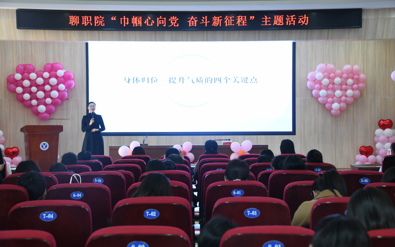 为迎接2022年“国际三八妇女节”, 3月7日下午,聊城职业技术学院妇联举办“巾帼心向党 奋斗新征程”主题讲座。聊城市第四人民医院党委副书记、院长江景华应邀做讲座,高级礼仪培训师韩秋莲,华夏银行理财经理张海燕,党委委员、副院长、妇联主席刘雪巍出席。妇联其他负责同志和女教师参加。