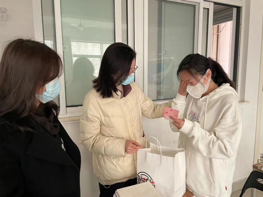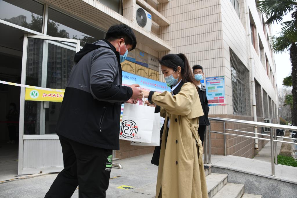 3月16日中午,天有些阴沉,还飘着蒙蒙的细雨。学校为全校身体抱恙的十几个学生准备了爱心午餐和疫情暖心小卡片,各班主任老师亲自领取并细心地送到这些学生的手中。