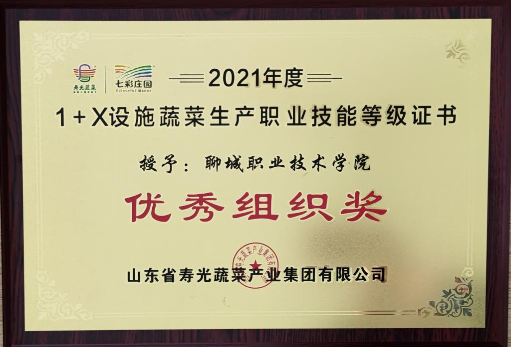 近日,我校农牧科技系组织30名学生参加1+X 设施蔬菜生产职业技能等级(中级)考试,27名同学考试过关,通过率90%,成绩突出。教育部2020年授权的1+X证书制度试点第四批职业教育培训评价组织—山东省寿光蔬菜产业集团有限公司为我校颁发2021年度1+X设施蔬菜生产职业技能等级证书优秀组织奖。