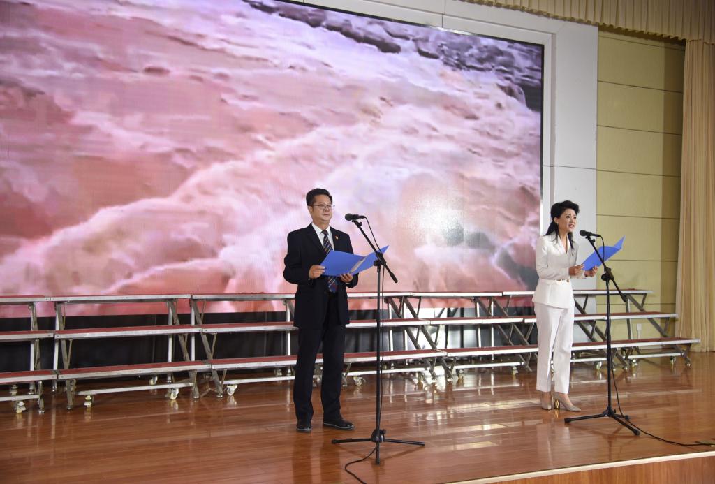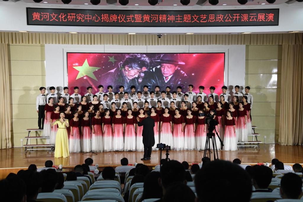 仪式以黄河精神主题文艺思政公开课的形式拉开了序幕。聊城职院党委委员、副院长高杉,党委委员、宣传部部长高平共同朗诵了《第三乐章----黄河之水天上来》,黄河大合唱艺术团演唱了《公仆赞》《黄河大合唱》等经典曲目,为现场观众带来了一场激情澎湃的视听盛宴。