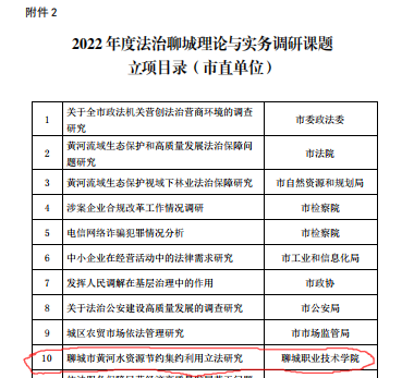 5月11日,市委全面依法治市委员会办公室下发《关于印发<2022年度法治聊城理论与实务调研课题立项目录>的通知》,经专家评审,立项课题47项(县市区18项、市直单位29项)。我院党政办公室报送的《聊城市黄河水资源节约集约利用立法研究》获准立项(市直单位)。
