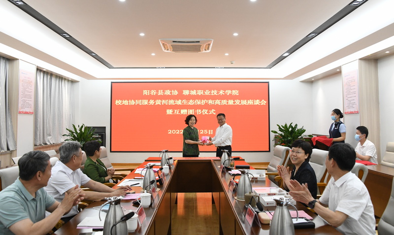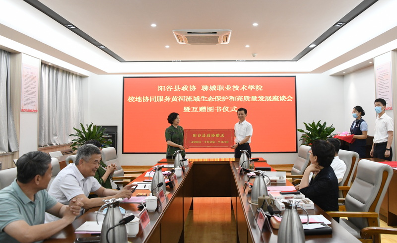 5月25日上午,阳谷县政协、聊城职业技术学院校地协同服务黄河流域生态保护和高质量发展座谈会暨互赠图书仪式在聊城职院举行。