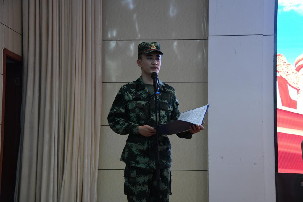 第五届“爱我国防”聊城市大学生主题演讲大赛一等奖获得者宫琳俊带来了朗诵作品《清澈的爱,只为中国》,点燃了现场学子志愿参军报国的热情。学校优秀退役复学学生刘豪诚回顾了自己在军营的成长成才经历,介绍了在部队的学习、训练、生活情况以及收获,号召大家投身火热军营,淬炼无悔青春。
