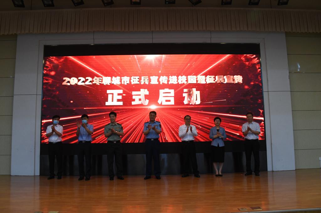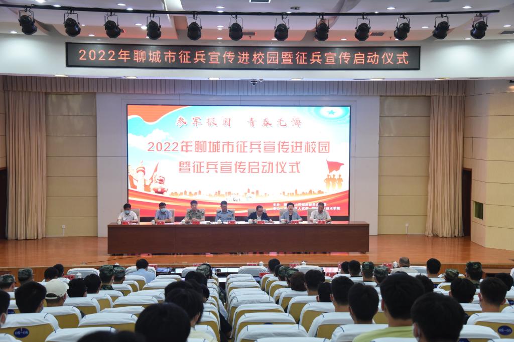 强军兴军,要在得人。6月9日上午,聊城市2022年征兵宣传进校园暨征兵宣传启动仪式在我校图书馆报告厅隆重召开。市委常委、军分区政委郝爱军,聊城市政府副市长李强,聊城职业技术学院党委书记靳凤莲,市军分区副司令冯建成,聊城大学副校长赵明吉,东昌学院院长助理刘广星,市委宣传部四级调研员周政出席会议。