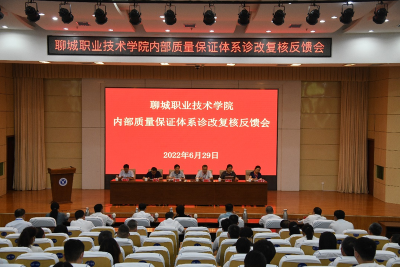 徐龙海代表学校做表态发言,表示将召开会议专题研究存在的问题,找准根源,明确措施,压实责任,强化联动,逐项落实,促进学校质量保证体系进一步优化,提升学校整体治理水平,切实把反馈意见转化为推动工作的具体举措。学校也将以此次诊改复核为契机,进一步明确目标,提高标准,完善机制,提升水平,全面对标新职业教育法、教育部提质培优行动计划、职教本科标准和学校“十四五”发展目标,不断完善内部质量保证体系,奋战“十四五”,再造新聊职,全面开创学校高质量发展新局面。