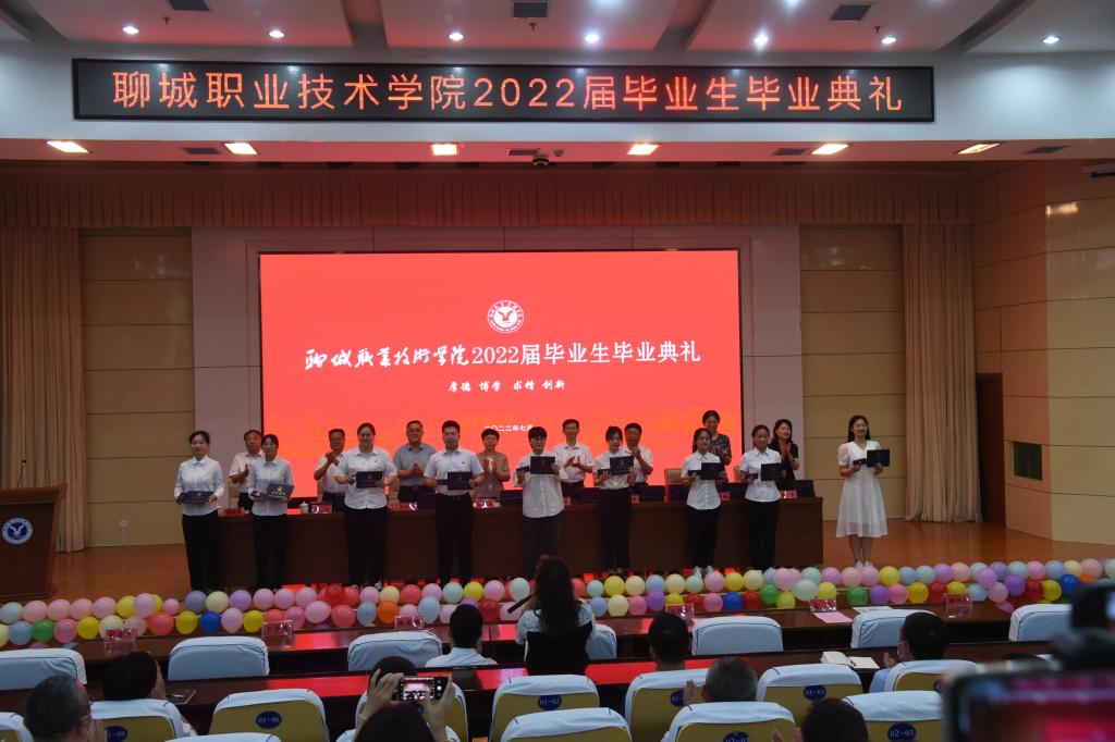 7月4日上午,聊城职业技术学院2022届毕业生毕业典礼在图书馆报告厅举行。校党委书记靳凤莲出席并主持,党委副书记、院长徐龙海及领导班子成员出席典礼,各系系主任、党团负责人、辅导员、班主任代表及150名毕业生代表参加典礼。