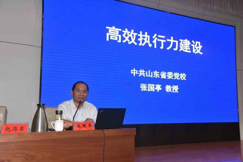 随后,山东省职教学会会长马广水教授,山东省委党校戚桂锋教授、张国亭教授,聊城市公安局网安支队警务技术二级主管刘洪伟和聊城市政府研究室副主任王士宁等专家围绕《站在新起点 迎接新挑战 实现新跨越》《科学认识十八大以来发生的历史性变革和取得的历史性成就》《领导执行力》《公文写作》《培育网络安全意识 做好舆情防范》等5个培训主题,分别进行授课。