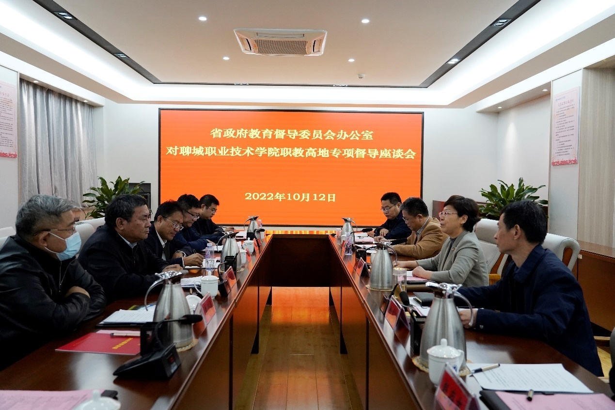 10月12日下午,以潍坊职业学院原院长王家爱为组长的山东省政府教育专项督导组一行6人实地督导我校职教高地建设情况。党委书记靳凤莲,党委副书记、院长徐龙海,党委副书记赵存吉,聊城市教育和体育局党组成员、副局长夏广立,职业教育和高等教育科科长郭忠岭参加活动。
