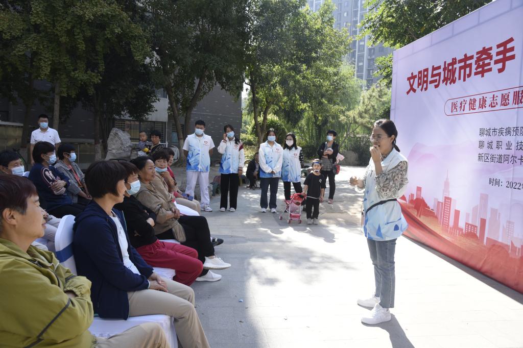 (护理系师生志愿者走进阿尔卡迪亚社区开展“文明与城市牵手,健康与你我同伴”医疗健康志愿服务活动)