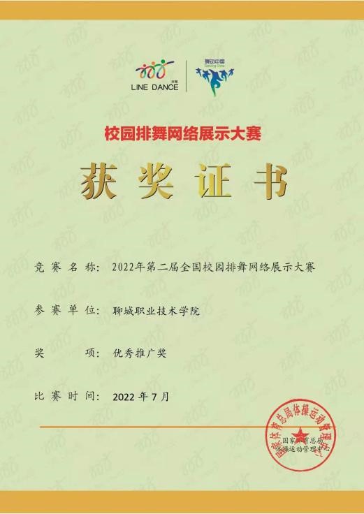 2022年第二届全国校园排舞网络展示大赛优秀推广奖