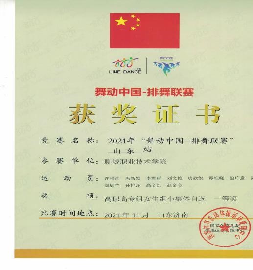 2021年“舞动中国—排舞联赛”山东站一等奖