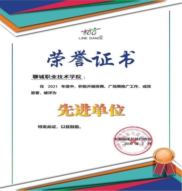 2021年度积极开展排舞、广场舞推广工作,成效显著,被评为“先进单位”