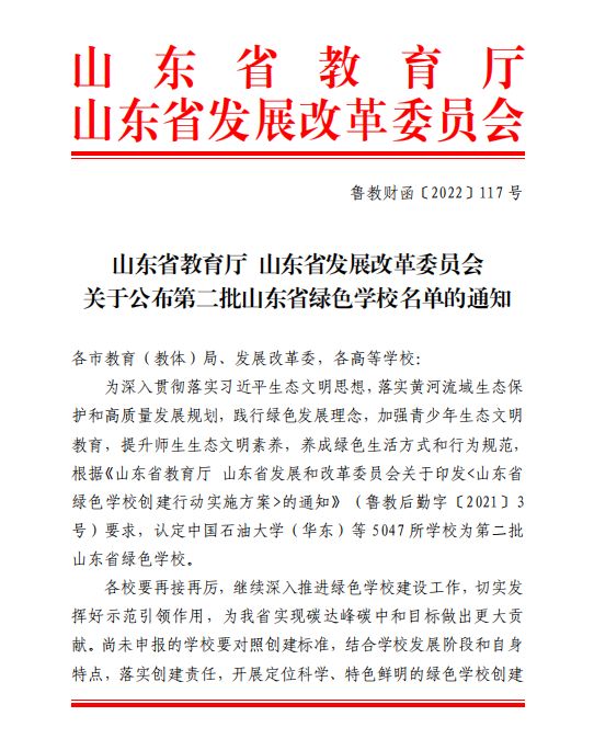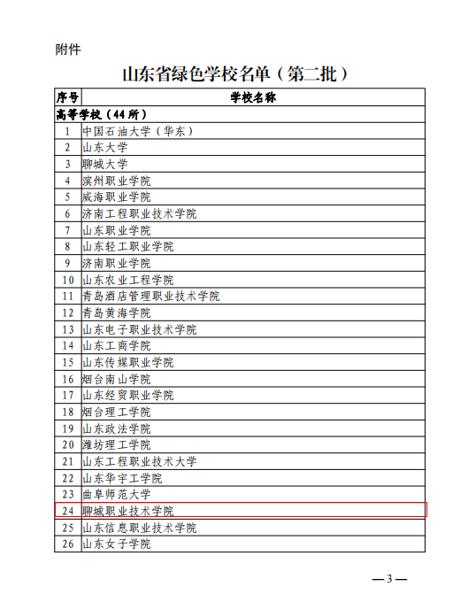 近日,山东省教育厅与山东省发展和改革委员会联合公布第二批山东省绿色学校名单,聊城职业技术学院被评为山东省绿色学校。此次,全省共有44所高校获此称号。