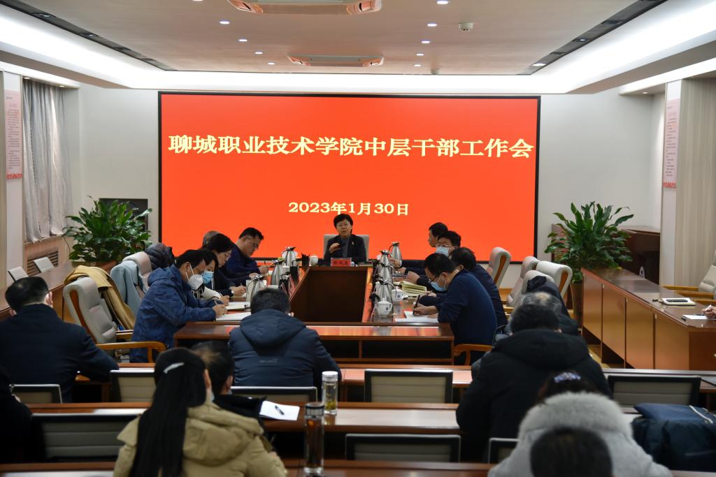 人勤春来早。1月30日,农历正月初九上午,聊城职业技术学院召开中层干部工作会,传达省市有关精神,部署新一年的工作。党委书记靳凤莲主持会议并讲话,党委副书记、院长徐龙海出席会议并讲话。学校领导班子全体成员,各处室、系(院)部主要负责人、各党总支副书记参加会议。
