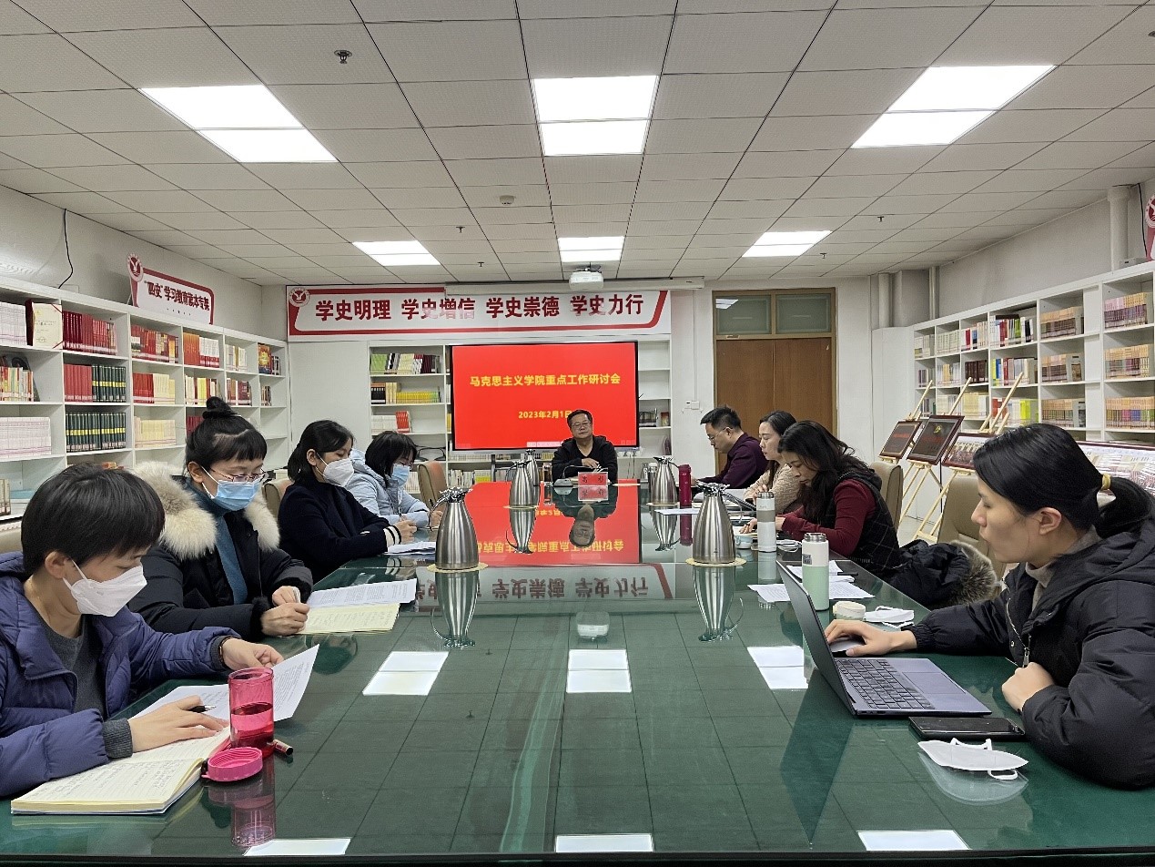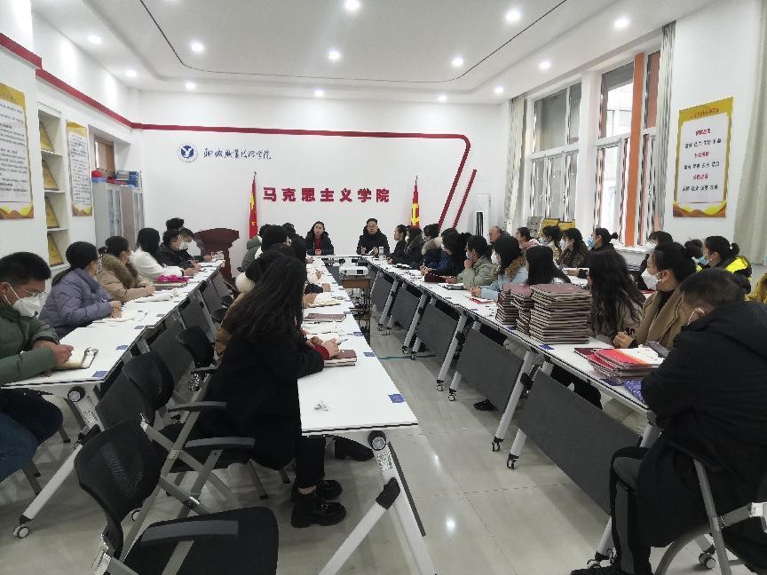 2月2日,马克思主义学院召开全体教师会议,再次传达学校会议精神以及马克思主义学院2023年工作安排,并进行了任务分工,确保每位教师各司其责、各尽其能,做到上下一盘棋一条心、团结实干、奋勇争先,助推学校高质量发展。
