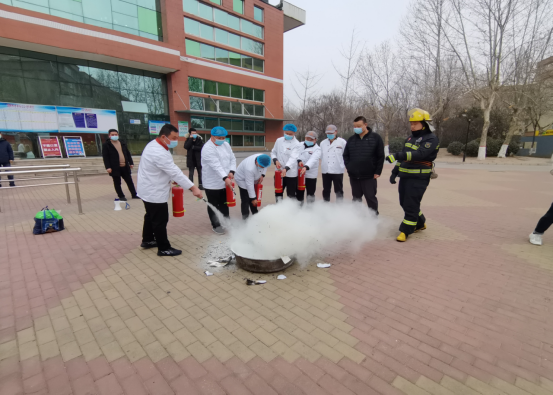 为加强校园消防安全工作,推动消防安全责任落实,确保新学期复学顺利开展。2月10日,学校邀请聊城市新区消防救援站为全校安保、餐饮、物业等服务保障人员开展校园消防安全演练活动。保卫处、餐厅从业人员共计300余人参加演练活动。