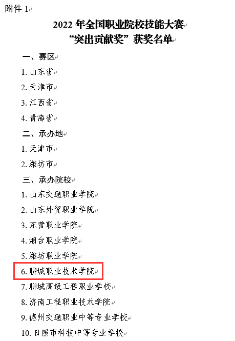 近日,全国职业院校技能大赛执行委员会公布了2022年全国职业院校技能大赛“突出贡献奖”获奖名单,聊城职业技术学院以优异的办赛成效获此殊荣,两名教师获“优秀工作者”荣誉称号。