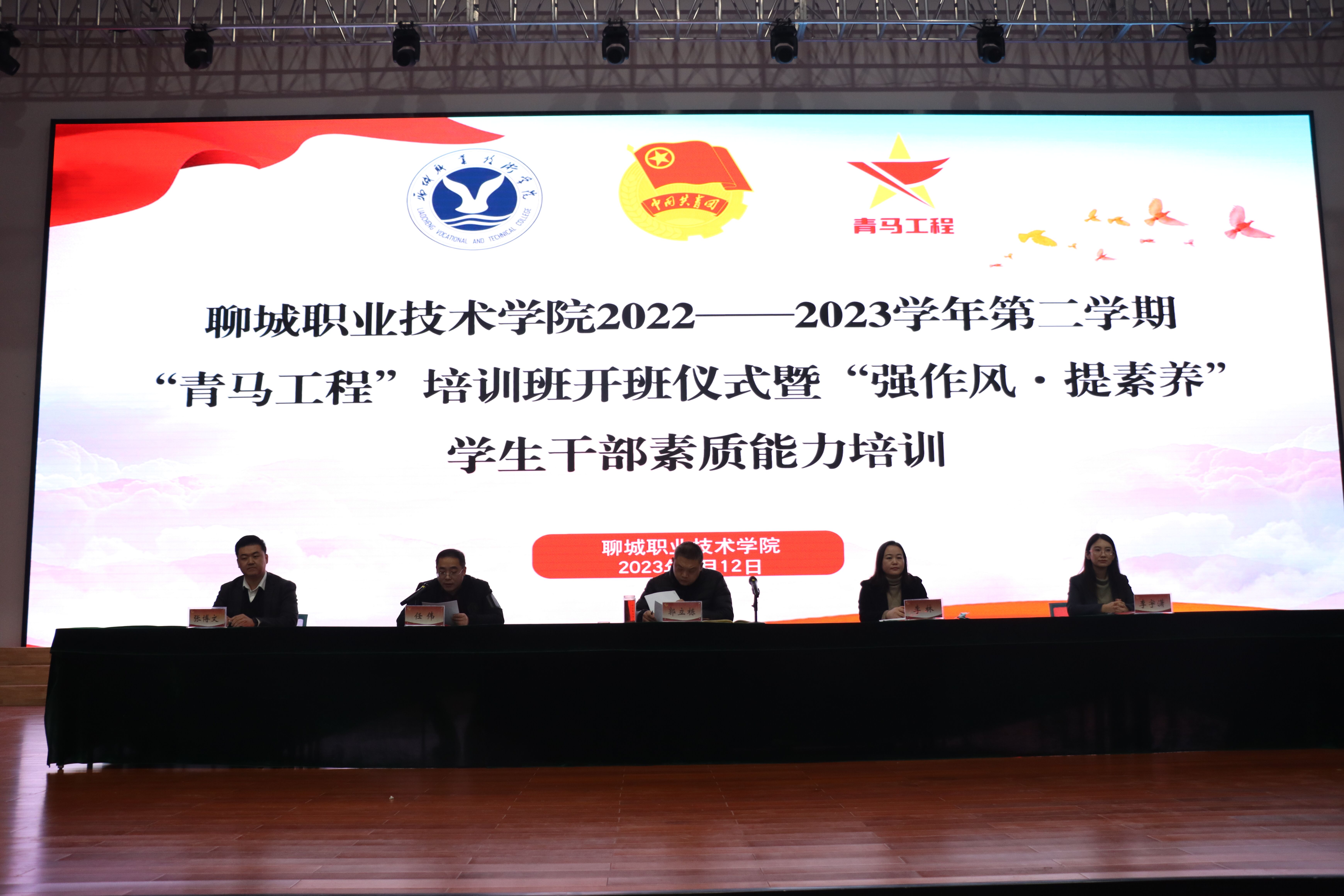 为一步提高我校学生干部队伍的政治素养和理论水平,激发大学生善于学习、敢于担当的动力,2月12日下午,聊城职业技术学院召开2022-2023学年第二学期“青马工程”培训班开班仪式暨“强作风·提素养”学生干部作风提升动员会。校、系两级学生会,各学生组织全体成员,2021、2022级全体班长及团支书共计600余人参加活动。