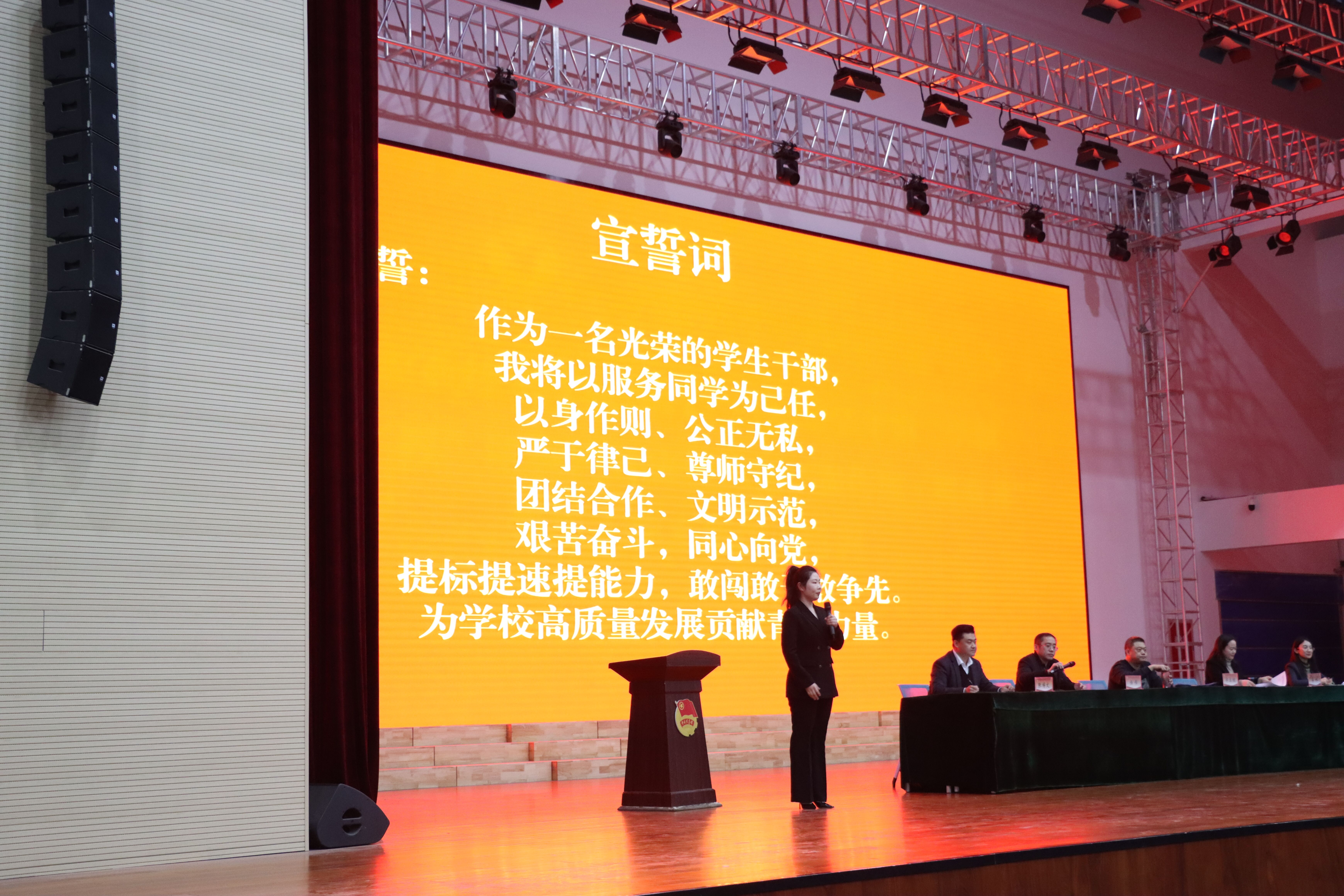 学工部副部长郭立栋为全体青马学员讲授“开学第一课”。他围绕市委“三提三敢”工作要求和学校重点工作部署,向全体学生干部发出动员令,通过“学校发展取得的成就”“学生组织的作用发挥”“新学期怎样干”三个方面,激励广大学生干部要不忘初心、勇毅前行,在学校党委的坚强领导和学工部、团委的悉心指导下,坚决落实好市委“提标提速提能力,敢闯敢干敢争先”的要求,高举团旗跟党走,青春当先开新局,为学校的高质量发展贡献青春力量。随后,全体学生干部庄严宣誓,纷纷表示要在新学期踔厉奋发、勇毅前行,争做一名有理想、敢担当、能吃苦、肯奋斗的新时代大学生,以更加优异的成绩助力学校发展。