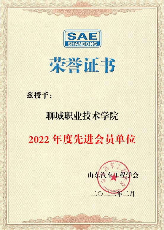 近日,山东汽车工程学会发布《关于表彰2022年度山东汽车工程学会先进会员单位和优秀工作者的决定》,聊城职业技术学院被授予“先进会员单位”称号,机电工程系党总支副书记张凤军被授予“优秀工作者”称号。