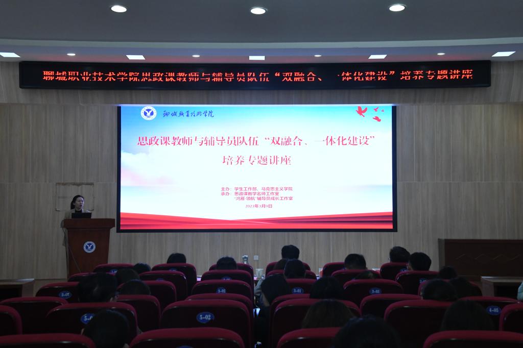 为促进我院思政课教师和辅导员队伍思想政治教育工作衔接、协同、融合,强化专业素养、锻造业务能力,3月9日下午,我校开展思政课教师与辅导员队伍“双融合、一体化建设”培养专题讲座。邀请省委党校党建教研部主任吴荣生教授以在线视频的形式进行讲解。学校原党委委员、副院长、现英模文化工作室主持人高杉,党委委员、副院长刘雪巍出席。马克思主义学院院长孙剑主持活动,学校全体思政课教师和辅导员参加讲座。