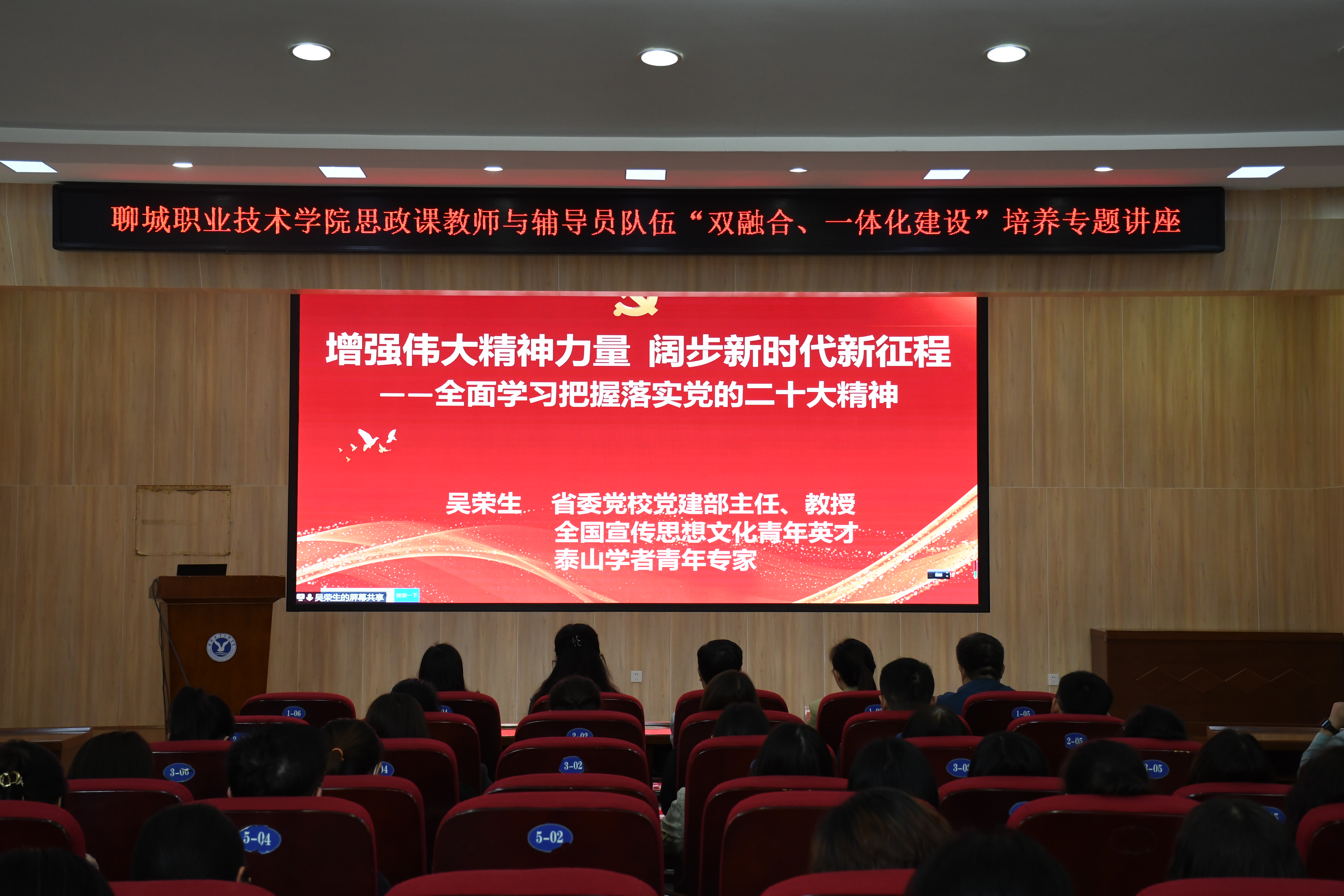 吴荣生教授以《增强伟大精神力量阔步新时代新征程——全面学习把握落实党的二十大精神》为题,从充分认识党的二十大的重大意义、全面准确学习领会二十大精神以及通过坚定信仰信念、践行党的宗旨、发扬斗争精神、勇于自我革命来全面贯彻落实党的二十大精神落地生根、开花结果等方面,做了一次精彩的辅导和解读。为全体思政课教师和辅导员全面理解和深刻把握党的二十大精神,用二十大精神指导思想政治教育工作实践创新起到良好的推动作用。