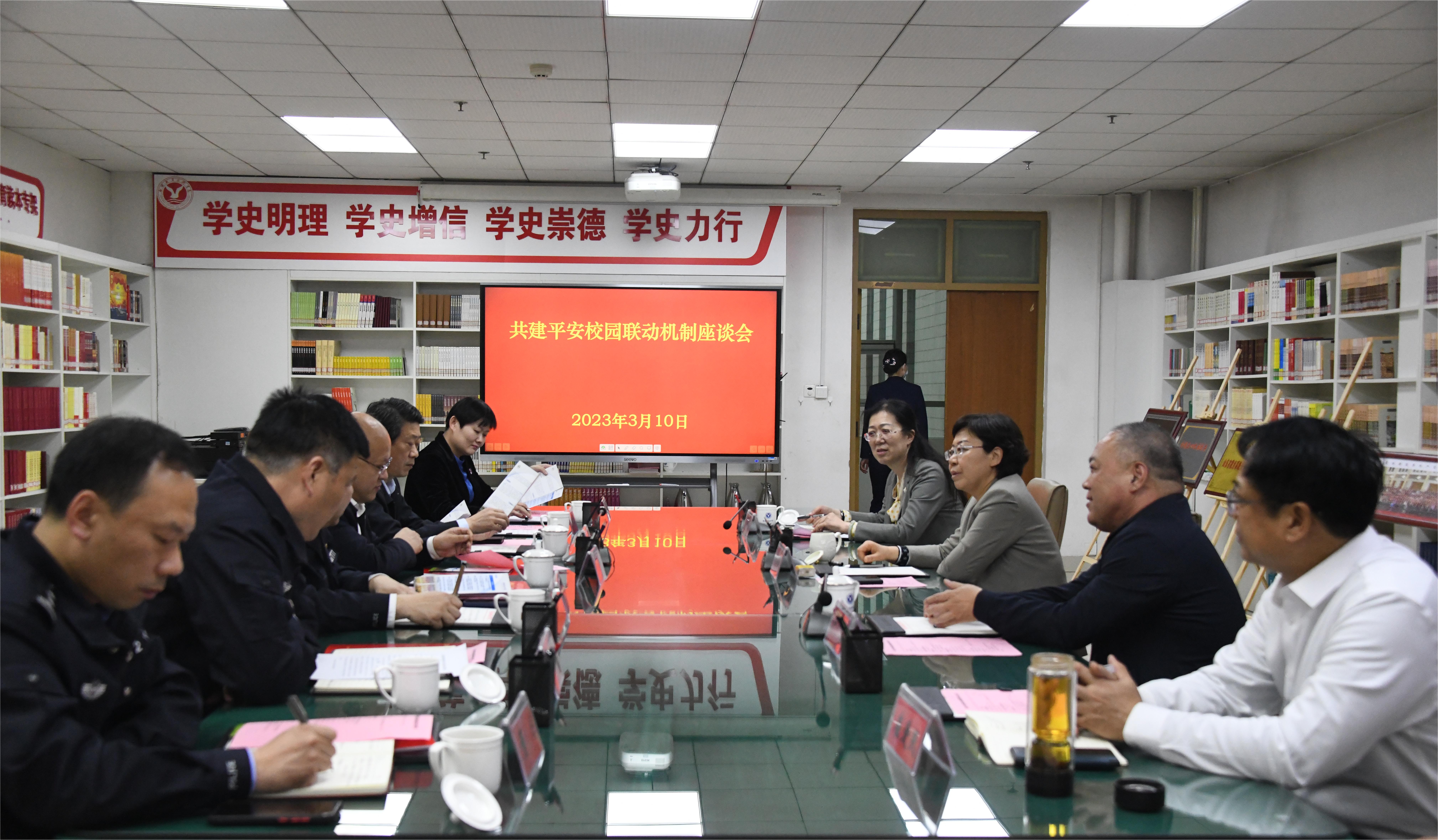 为进一步推动平安校园建设,加强校地协同,切实保障学校校园及周边环境安全。3月10日下午,我校召开共建平安校园联动机制座谈会。党委书记靳凤莲主持会议。聊城市城管局党组书记、局长李其超,党组成员、副局长、市政工程管理服务中心主任赵同江,副局长孙慧芳;聊城市市场监督管理局党组书记、局长宋一丁;聊城市公安局交通巡逻警察支队支队长吕克军、政保支队支队长楚泽海、政保支队大队长董戈参加会谈。党委委员、副院长许广元,党委委员、副院长刘雪巍,党委委员、统战部部长崔爱民,后勤处、保卫处负责人参加会议。