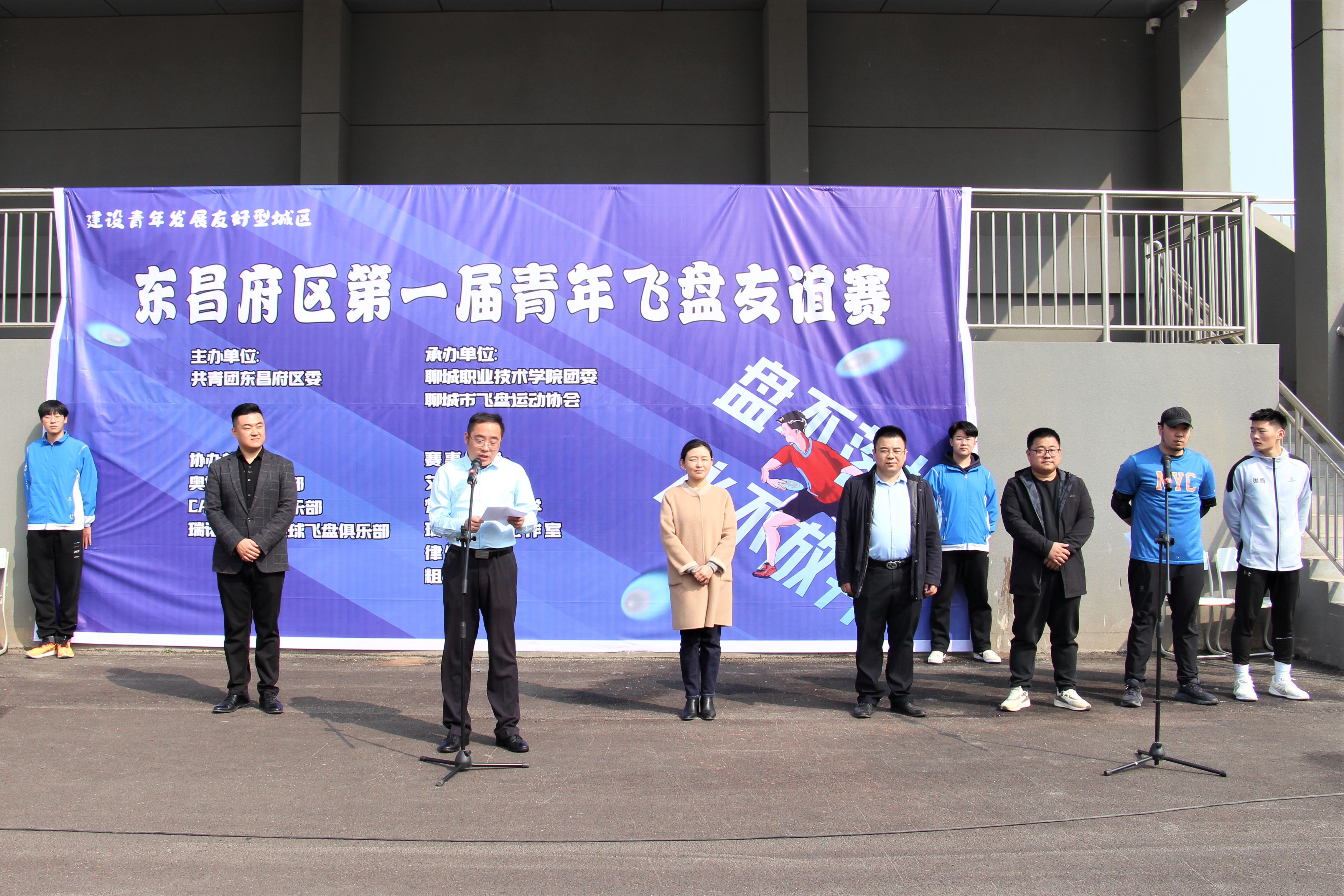 3月19日,由共青团东昌府区委主办,聊城职业技术学院团委、聊城市飞盘运动协会共同承办的东昌府区第一届春季飞盘挑战赛在我校北校区体育场顺利举行。共青团东昌府区委书记齐亚芳、飞盘运动协会的相关负责人和全体参赛运动员共同参加开赛式。
