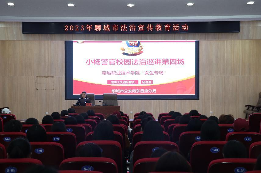 为进一步提升女大学生的自护能力,学会用法律手段维护自身权益,近日,我校邀请聊城市公安局东昌府分局法制大队四级警长杨倩倩在南校区第二报告厅做“守护成长”刑法知识讲座,各系部150余名师生参加活动。