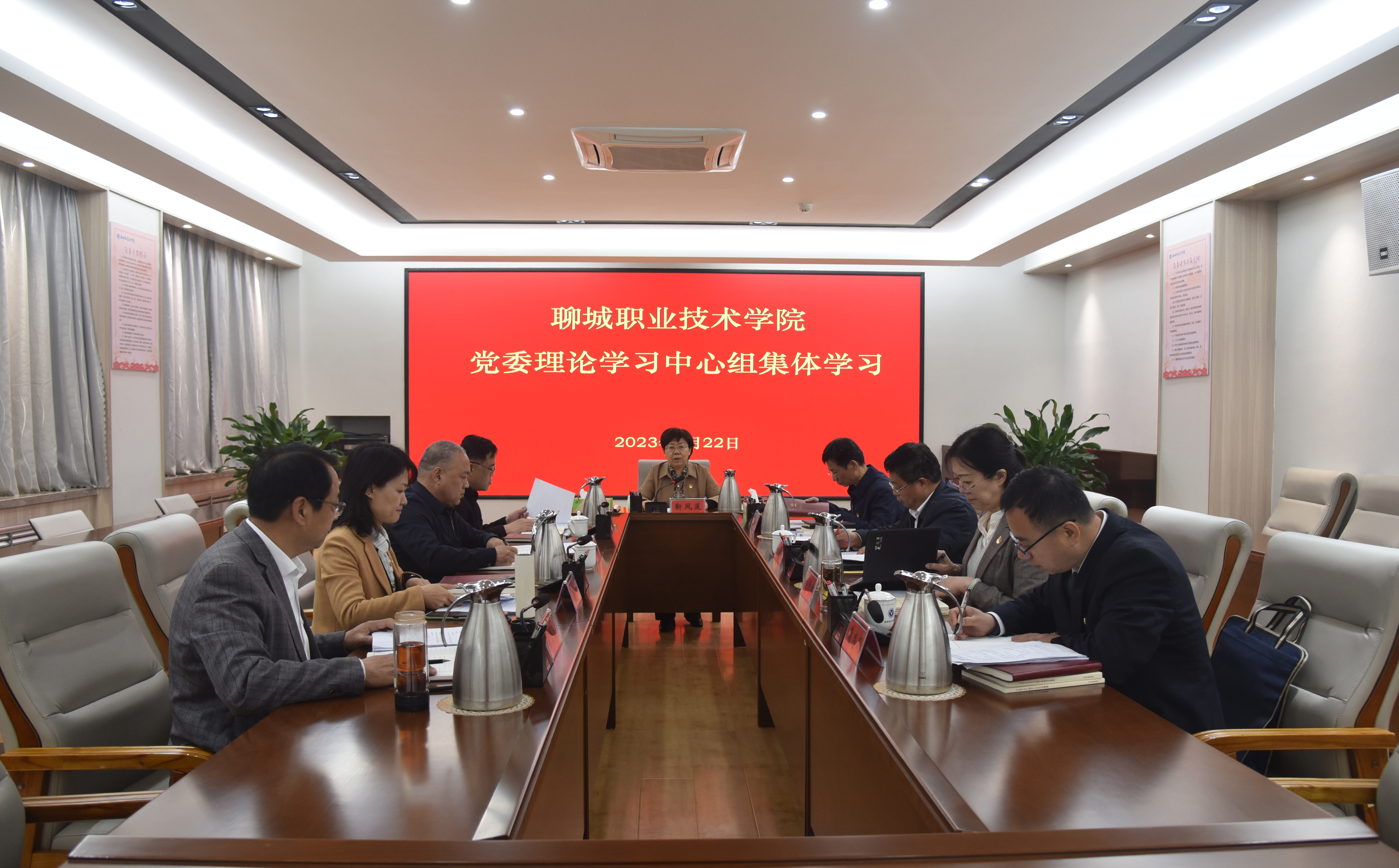 3月22日上午,聊城职业技术学院党委理论学习中心组围绕党的二十大精神、全国两会和习近平总书记重要讲话精神和大兴调查研究之风等方面进行集体学习。党委书记靳凤莲主持学习,党委副书记、院长徐龙海等党委领导班子成员和相关处室负责人参加学习。