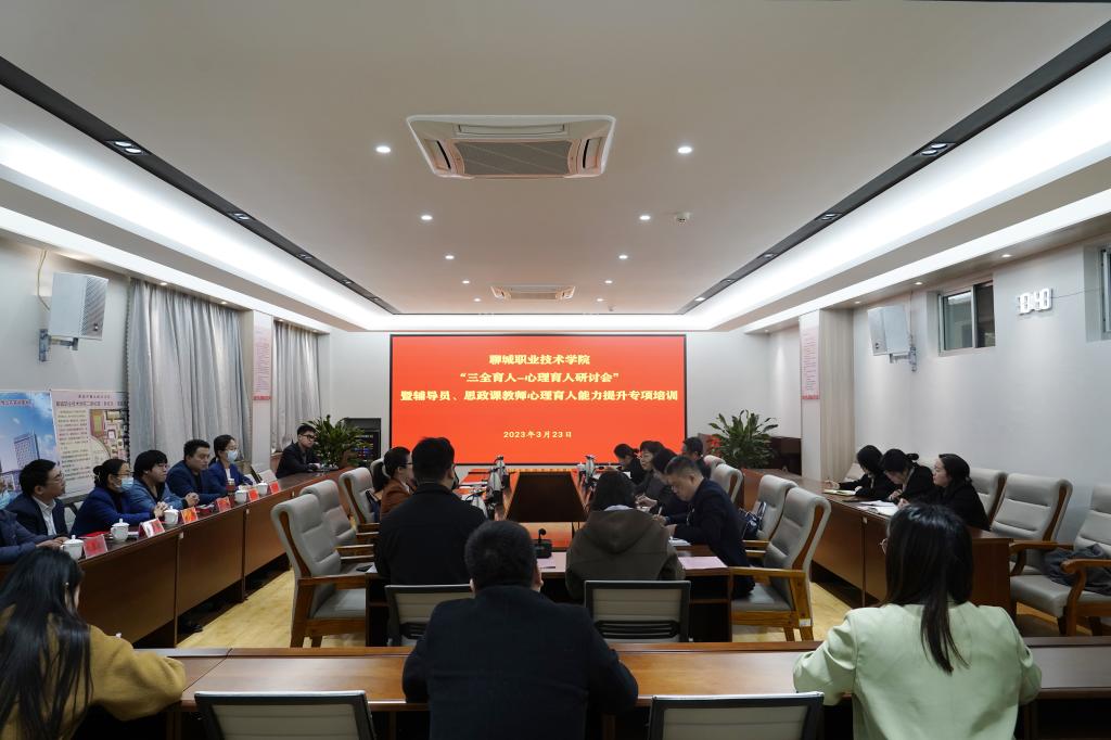 为贯彻三全育人理念,积极推动心理育人一体化工作体系建设。3月23日,我校举办“三全育人—心理育人研讨会”暨辅导员、思政课教师心理育人能力提升专项培训。聊城市第四人民医院党委书记武建胤,党委副书记、院长江景华,学校党委书记靳凤莲,马克思主义学院名誉院长高杉出席会议。党委委员、副院长刘雪巍主持研讨会。第四人民医院心理健康服务中心副主任贾春红、心理咨询专家团队、学工部全体人员、思政课教师、辅导员参加会议。