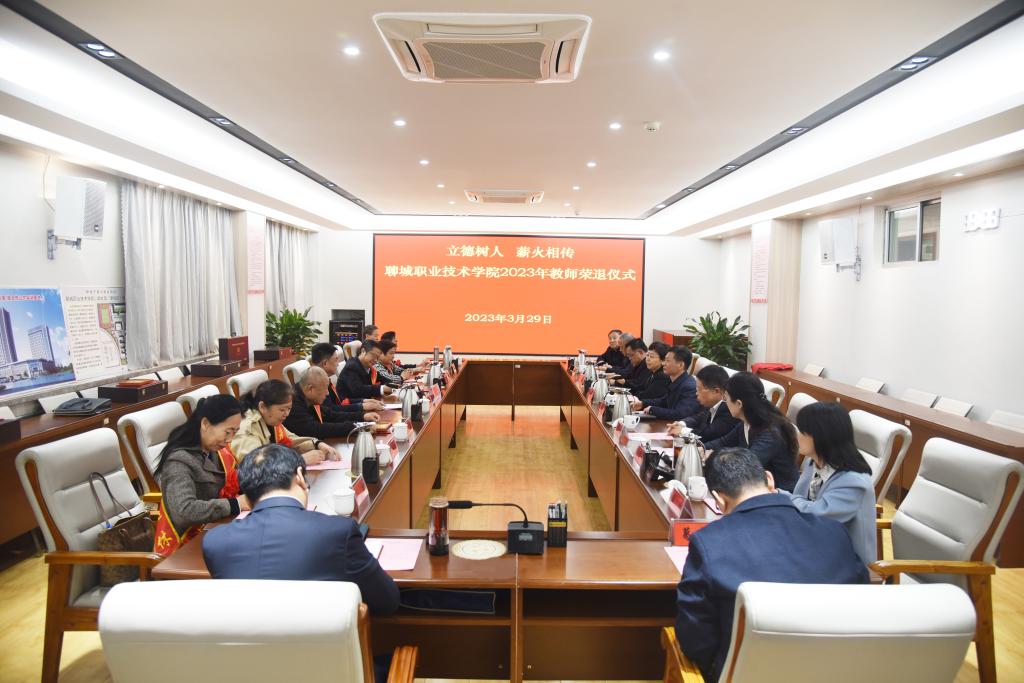 初心不改杏坛育桃李,薪火相传聊职铸师魂。3月29日上午,聊城职业技术学院为近两年退休的教师举行简短而温馨的荣退仪式,党委书记靳凤莲,党委副书记、院长徐龙海及全体领导班子成员出席活动。近两年退休的教师代表,相关部门负责人,骨干教师以及2022年新进教师代表等参加活动。荣退仪式由党委副书记赵存吉主持。