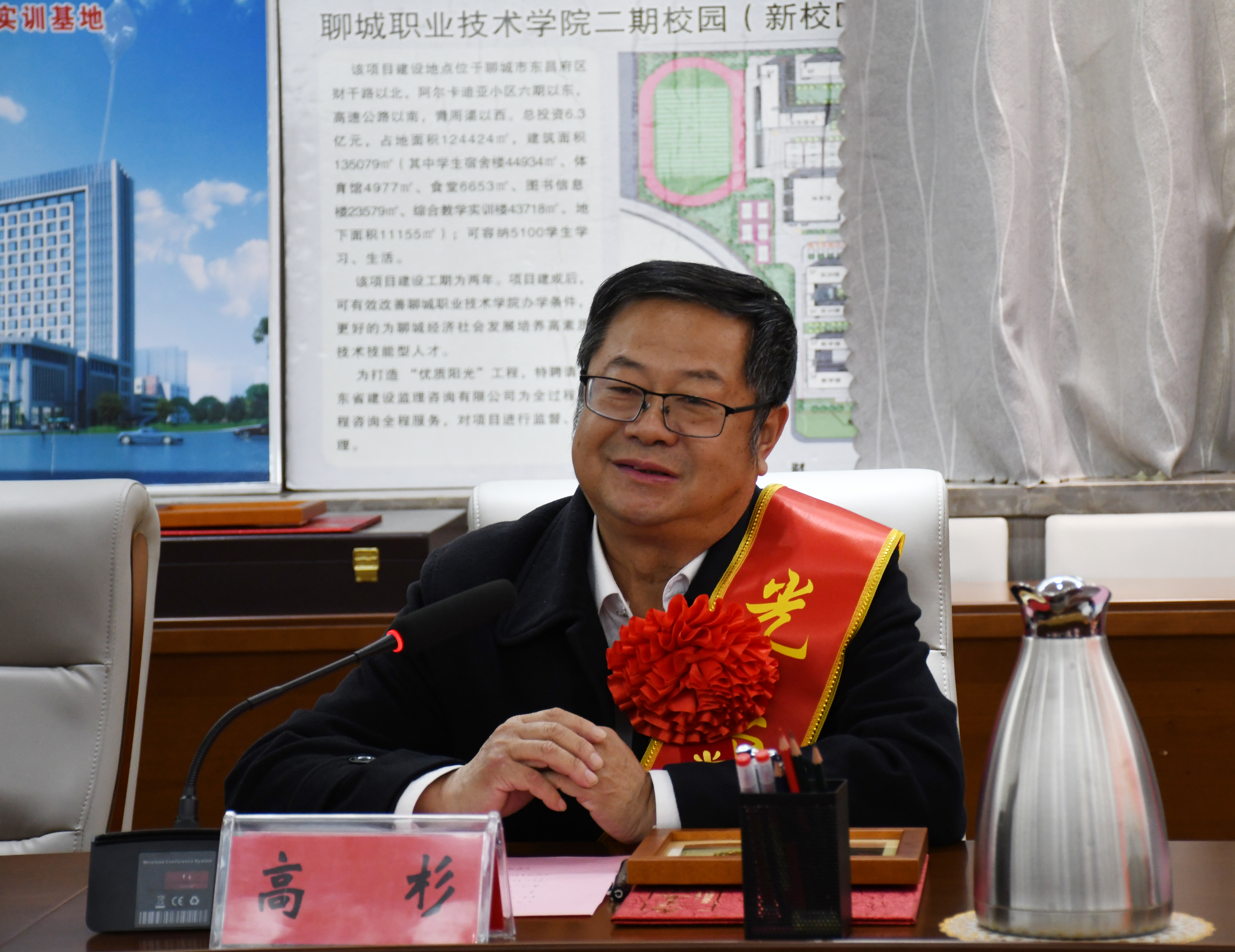 徐龙海在致辞中感谢退休教师为学校建设和发展做出的贡献,他希望退休教师们离岗不离党、退休不褪色,心系学校发展、关注职业教育,当好年轻教师成长的“引路人”和学校建设的“参谋长”,为聊职高质量发展继续贡献力量。