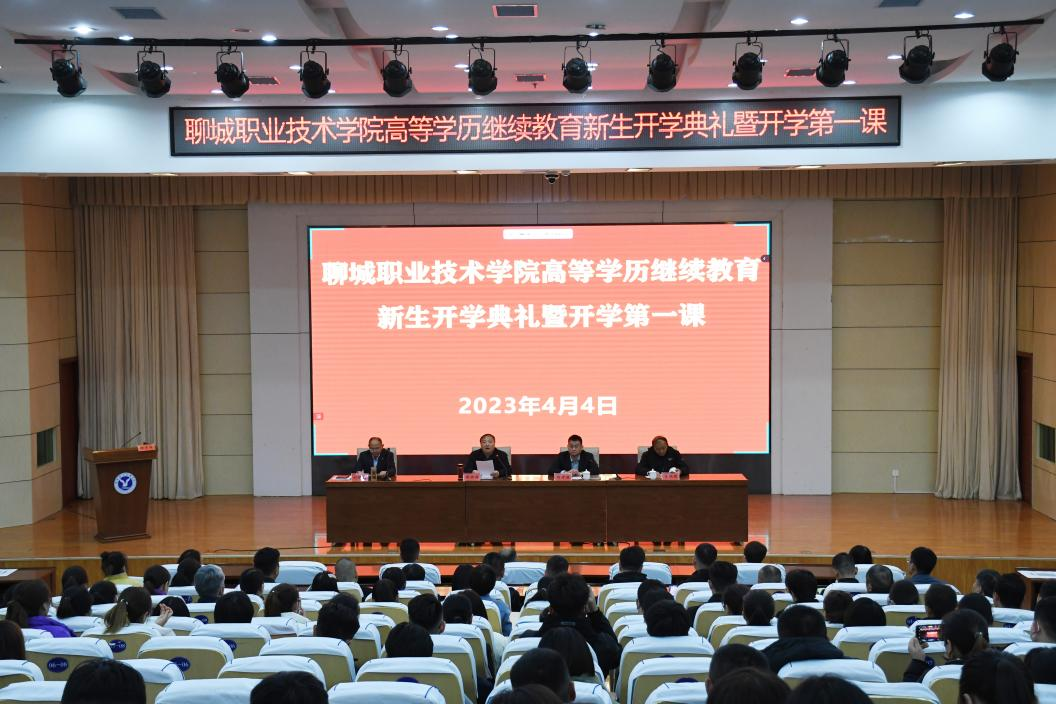 4月4日,聊城职院举行高等学历继续教育2023级新生开学典礼暨开学第一课。党委委员、副院长徐洪祥,继续教育中心有关人员、相关系部教学主任、各教学点负责人及学员代表200多人出席典礼。开学第一课以线下主会场、线上直播的方式进行。