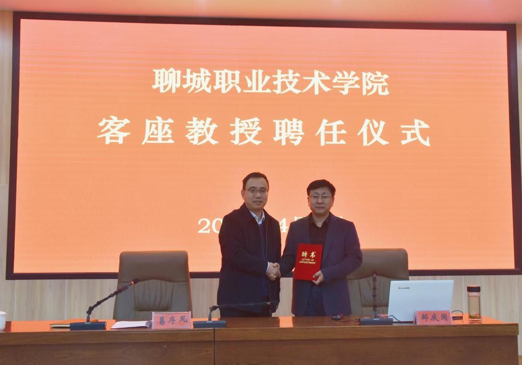 会前,聊城职业技术学院还举办了客座教授聘任仪式,葛序风为邹庆国颁发客座教授聘书,希望邹教授继续发挥自身资源优势,加强与学校的交流合作,助力学校高质量发展。