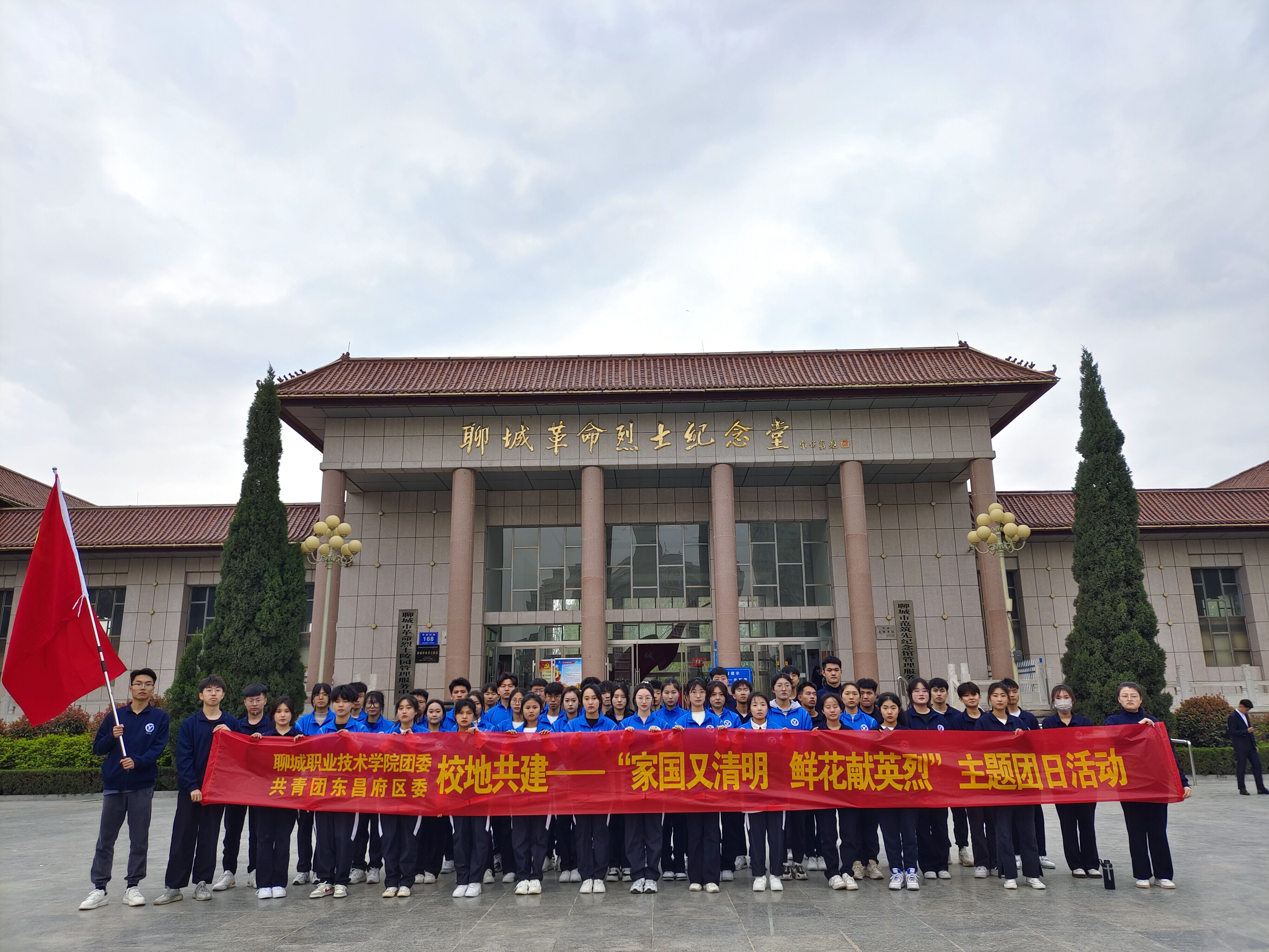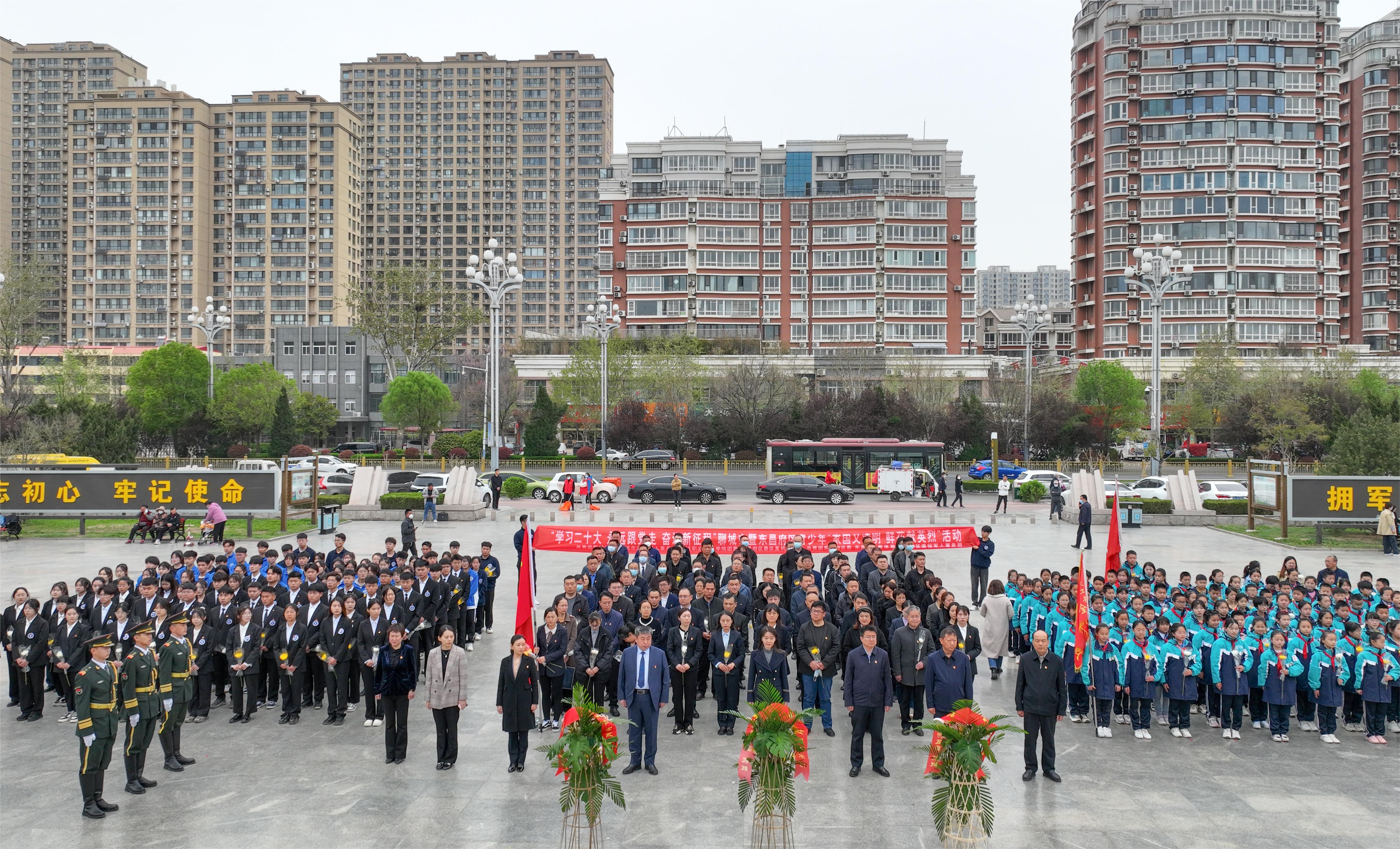 为深入学习宣传贯彻党的二十大精神,助推党团队一体化,进一步引导共产党员、青年团员和少先队员缅怀纪念英雄烈士,传承红色基因,赓续红色血脉,4月3日,共青团聊城市委、聊城市少工委、聊城市退役军人事务局、聊城职业技术学院团委在聊城市革命烈士陵园烈士纪念广场联合举办“学习二十大 永远跟党走 奋进新征程”聊城市暨东昌府区青少年“家国又清明 鲜花献英烈”活动。我校国旗护卫队和青年学生代表100余人参加活动。