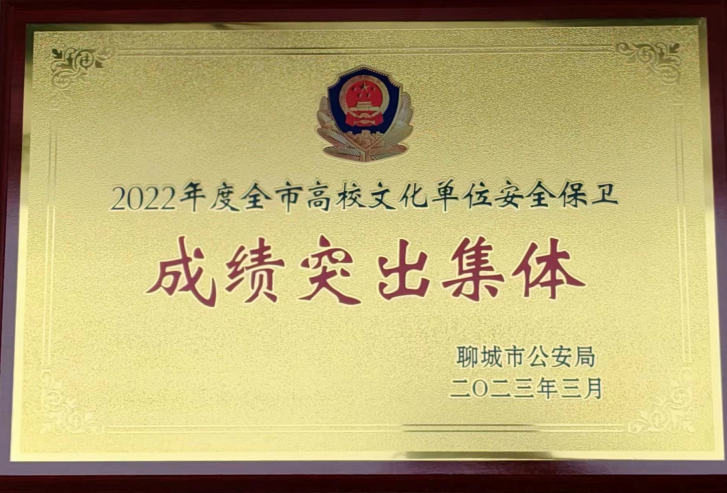 近日,聊城市公安局下发了《关于对全市高校文化单位安全保卫工作成绩突出集体和个人予以表扬的通报》,聊城职业技术学院保卫处荣获“2022年度全市高校文化单位安全保卫成绩突出集体”。