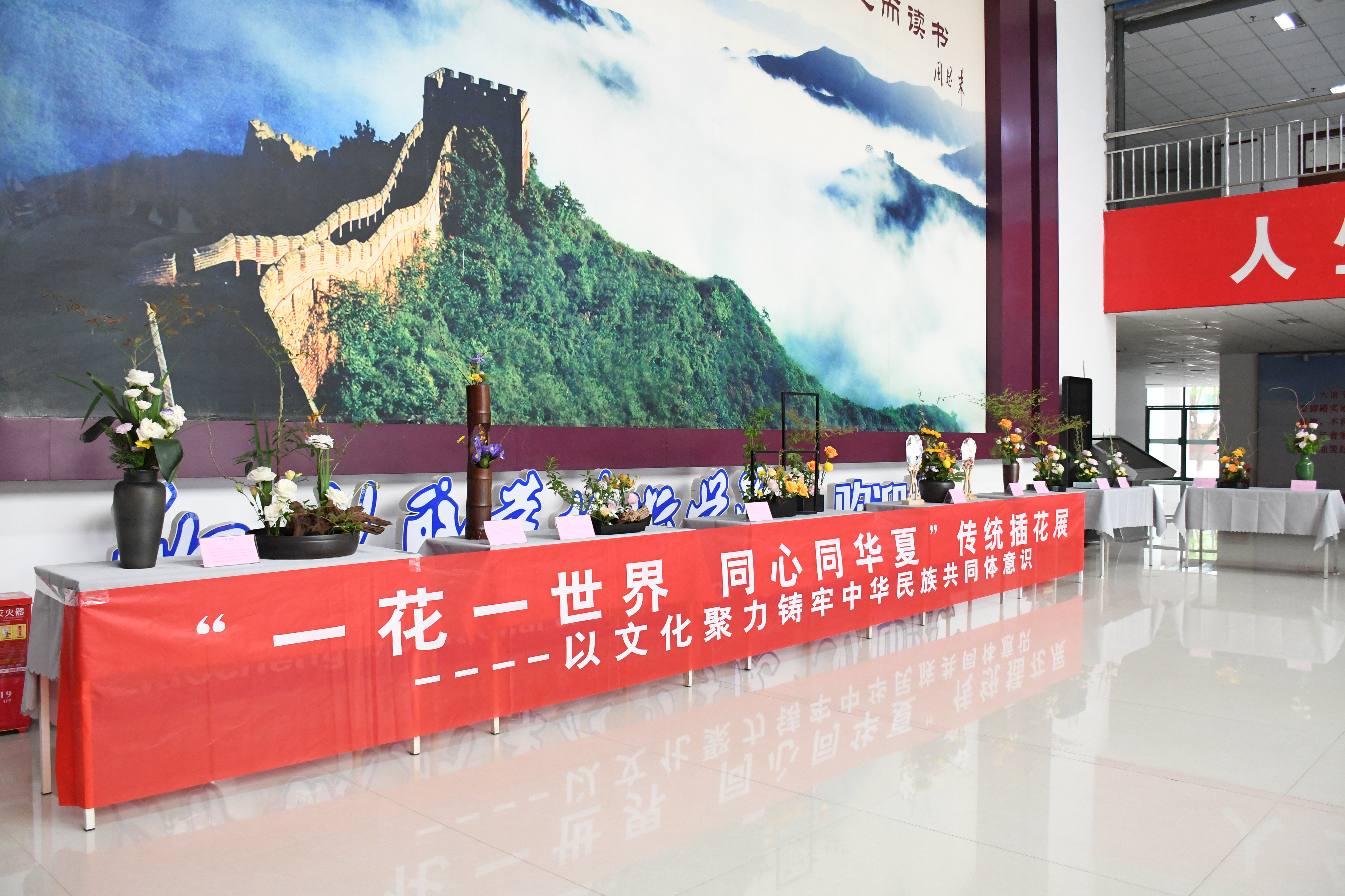 芳菲四月,万物复苏,由聊城职业技术学院党委统战部、学生工作部主办,校团委、农牧科技系插花社团与马克思主义学院繁星社团红石榴小组承办的“一花一世界,同心同华夏——中国传统插花展”溢香呈现。