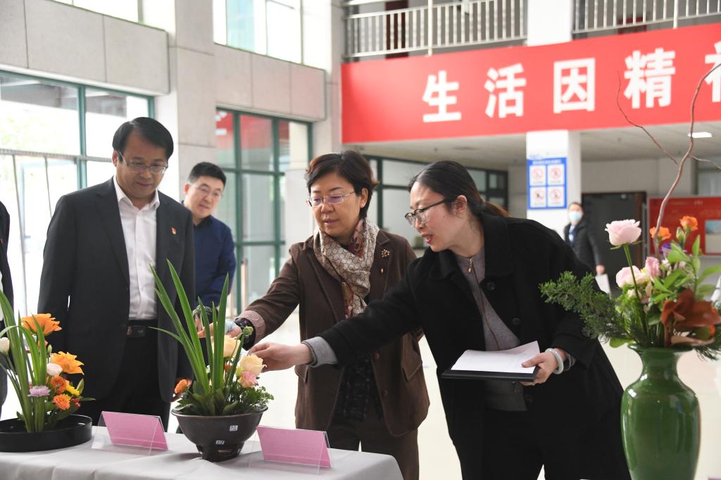 党委书记靳凤莲对插花作品在创意、构图、色彩、意境以及应用各个方面给予了高度评价,她指出:“通过各类社团活动及第二课堂,很大程度上锻炼学生们的综合能力,培养学生的审美,陶冶情操。通过一个花艺作品展示、推荐一本相关书籍,一首优美的乐曲,分享一个故事等,将思政教育、专业教育融为一体,达到春风化雨、润物细无声教育目的。”