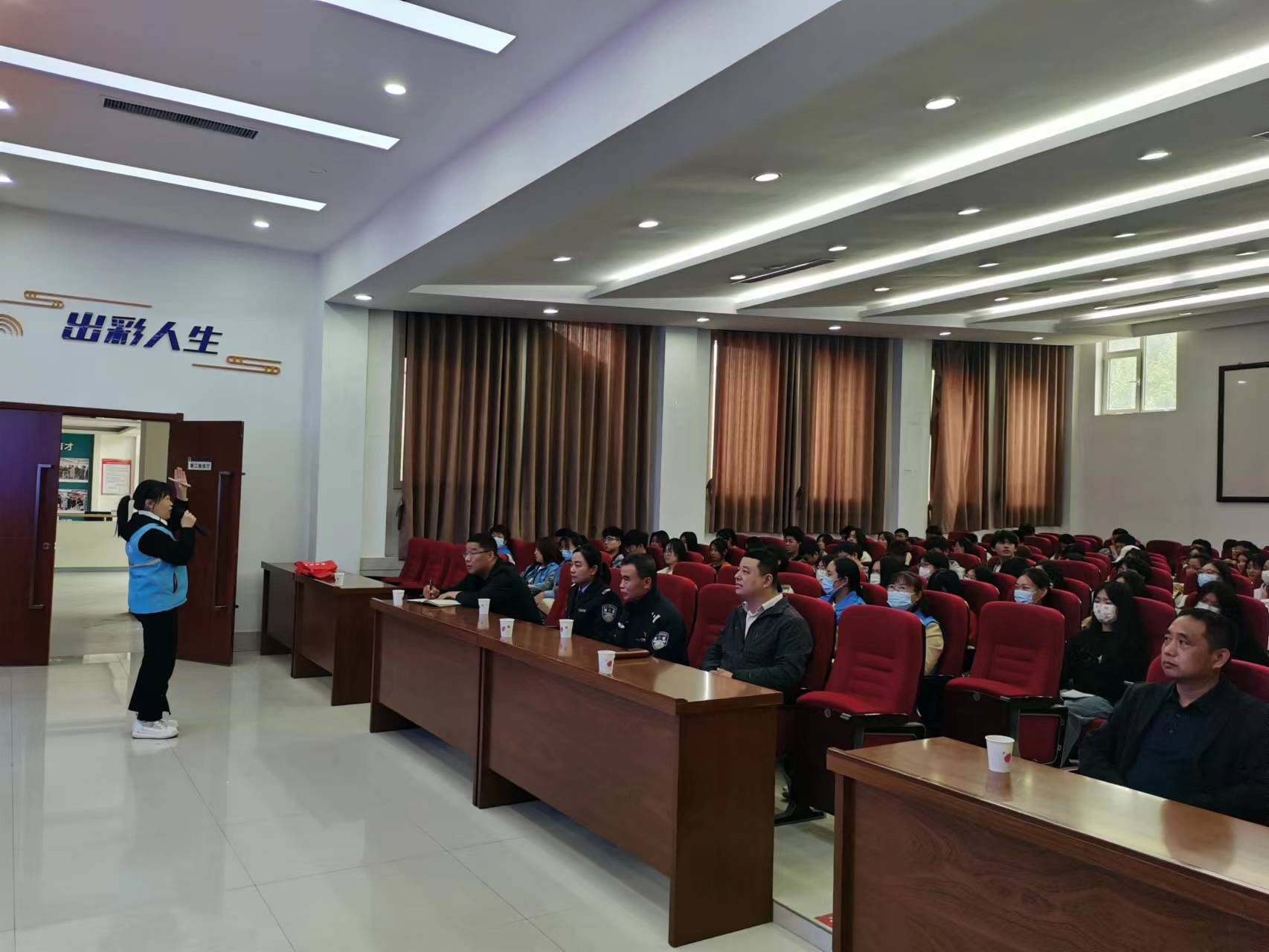 首先,荣玮娜警官为大家讲解了国家安全知识,从何为国家安全、当前国际国内形势、危害国家安全的行为及典型案例、如何维护国家安全四个方面开展详细解读了总体国家安全观。通过案例讲解帮助大家识别典型邪教组织,认清邪教本质,引导同学们相信科学,抵制邪教。