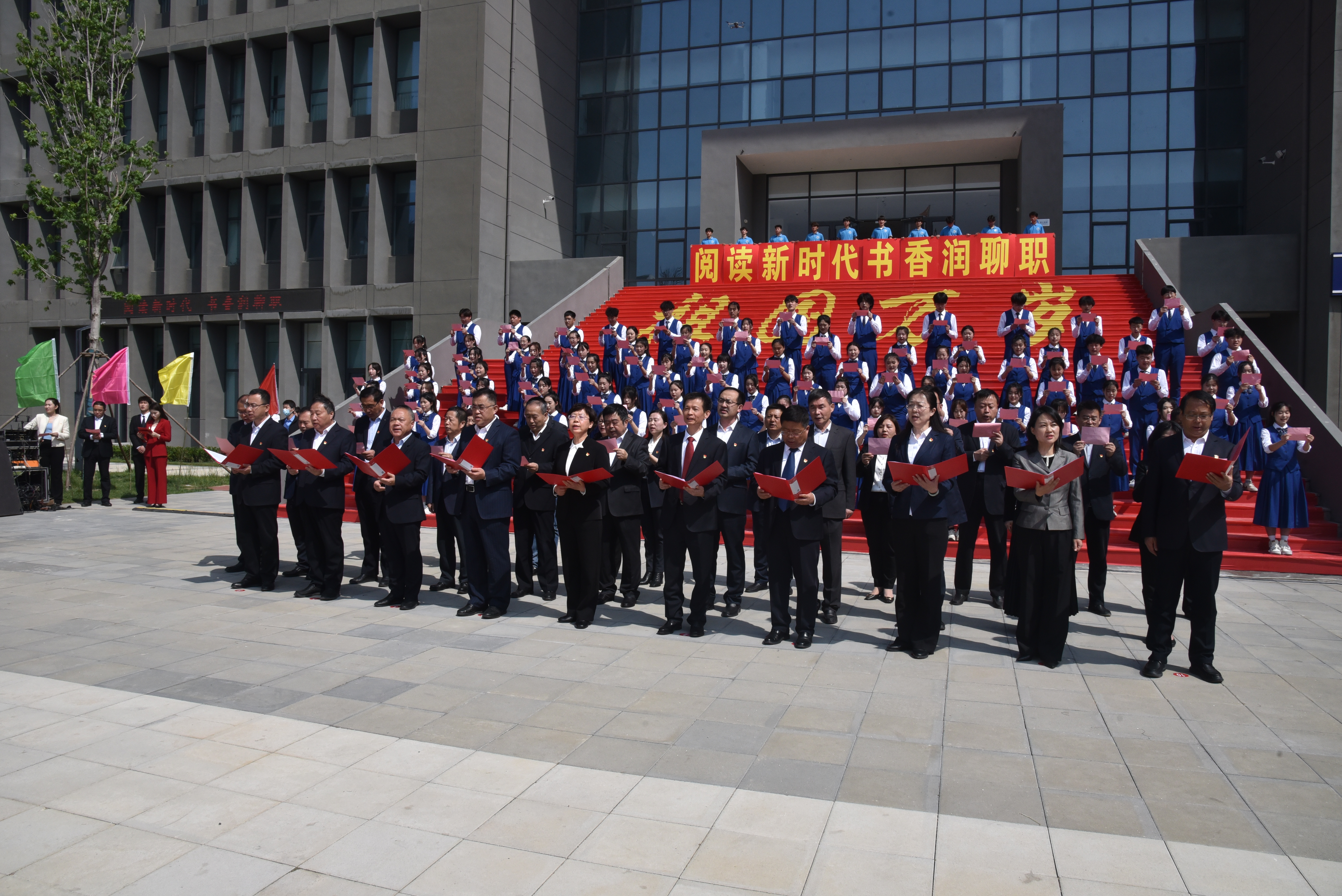 春日芳菲好,读书正当时。为落实习近平总书记关于“深化全民阅读活动”的重要讲话精神,4月26日,图书新馆启用暨“阅读新时代·书香润聊职”系列活动启动仪式在聊城职业技术学院新校区羲和广场举行。党委书记靳凤莲出席仪式,党委副书记、院长徐龙海出席仪式并致辞。学校领导班子全体参加活动。