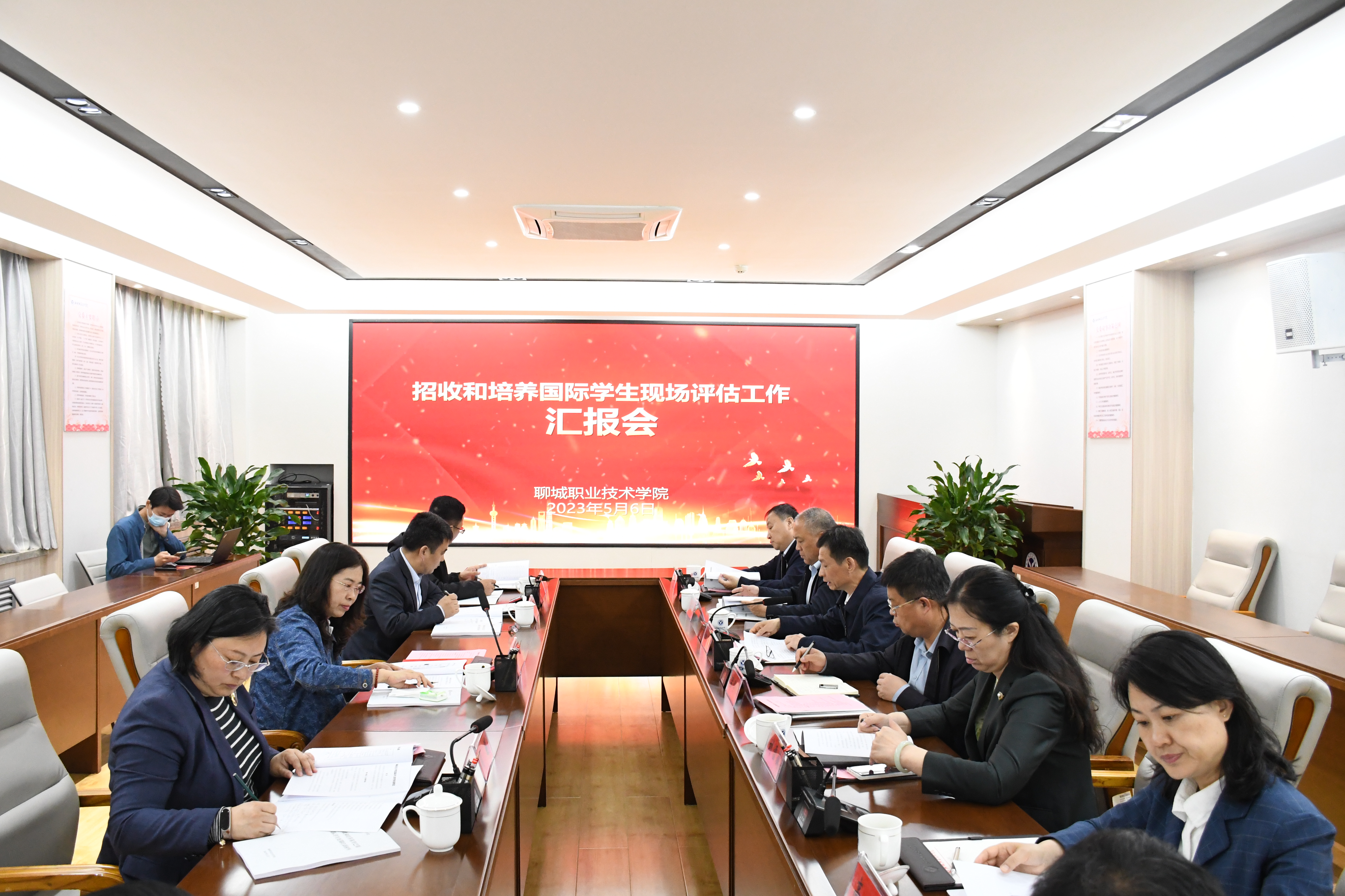 5月6日,由济南大学国际教育交流学院院长孙岩梅任组长,山东科技大学国际交流学院院长范志坚、青岛酒店管理职业技术学院国际交流与合作处处长周莉、山东省教育厅国际交流与合作处宋志强主任组成的专家组对我校招收和培养国际学生资格进行现场评估。党委副书记、院长徐龙海主持活动,在校领导班子成员参加活动。