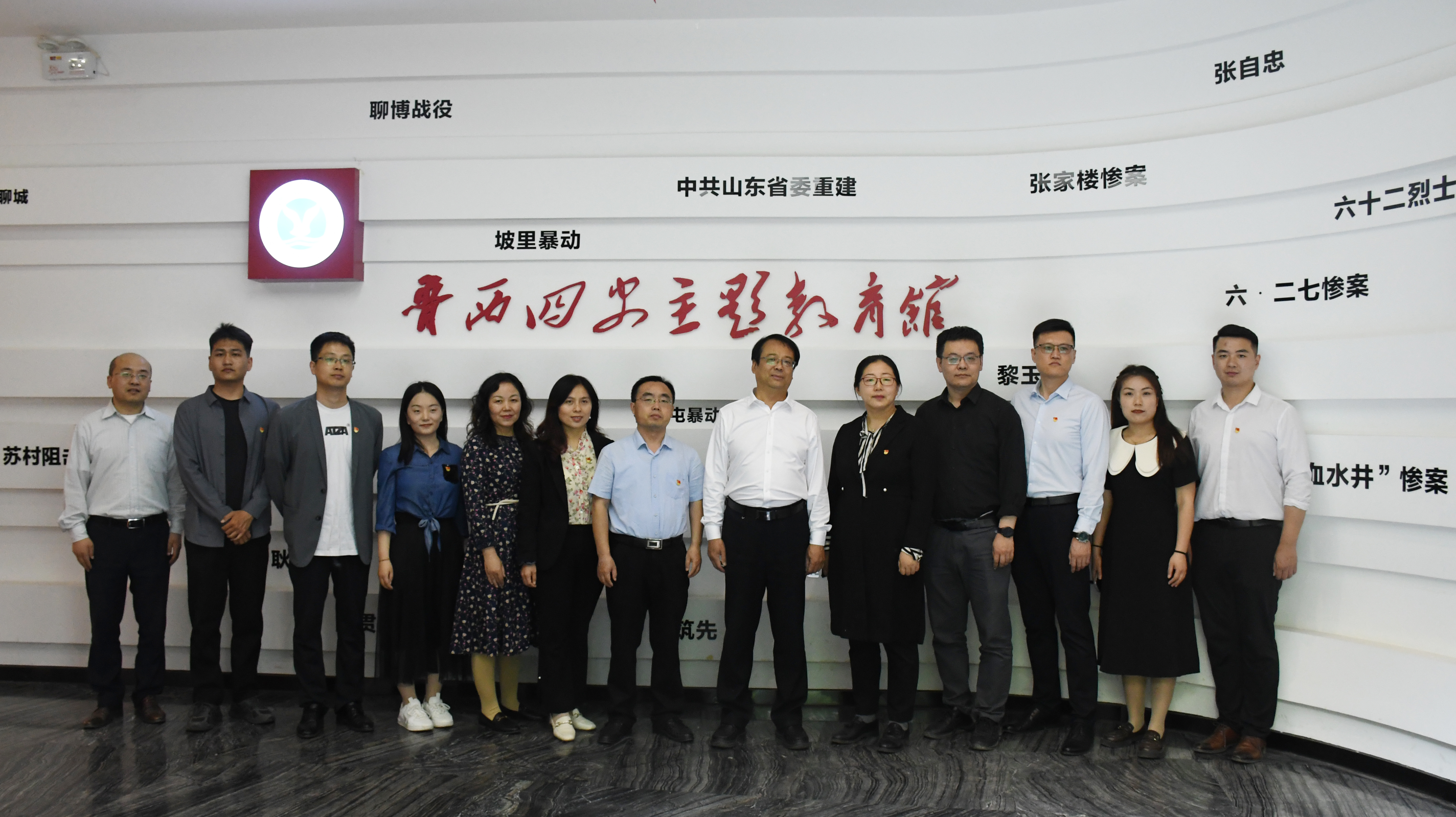 5月12日,在副部长王黎、岳增刚的带领下,聊城大学宣传部党支部一行11人走进聊城职业技术学院鲁西“四史”主题教育馆参观学习,感悟红色文化,接受“四史”教育。聊城职院党委委员、统战部部长崔爱民陪同参观。
