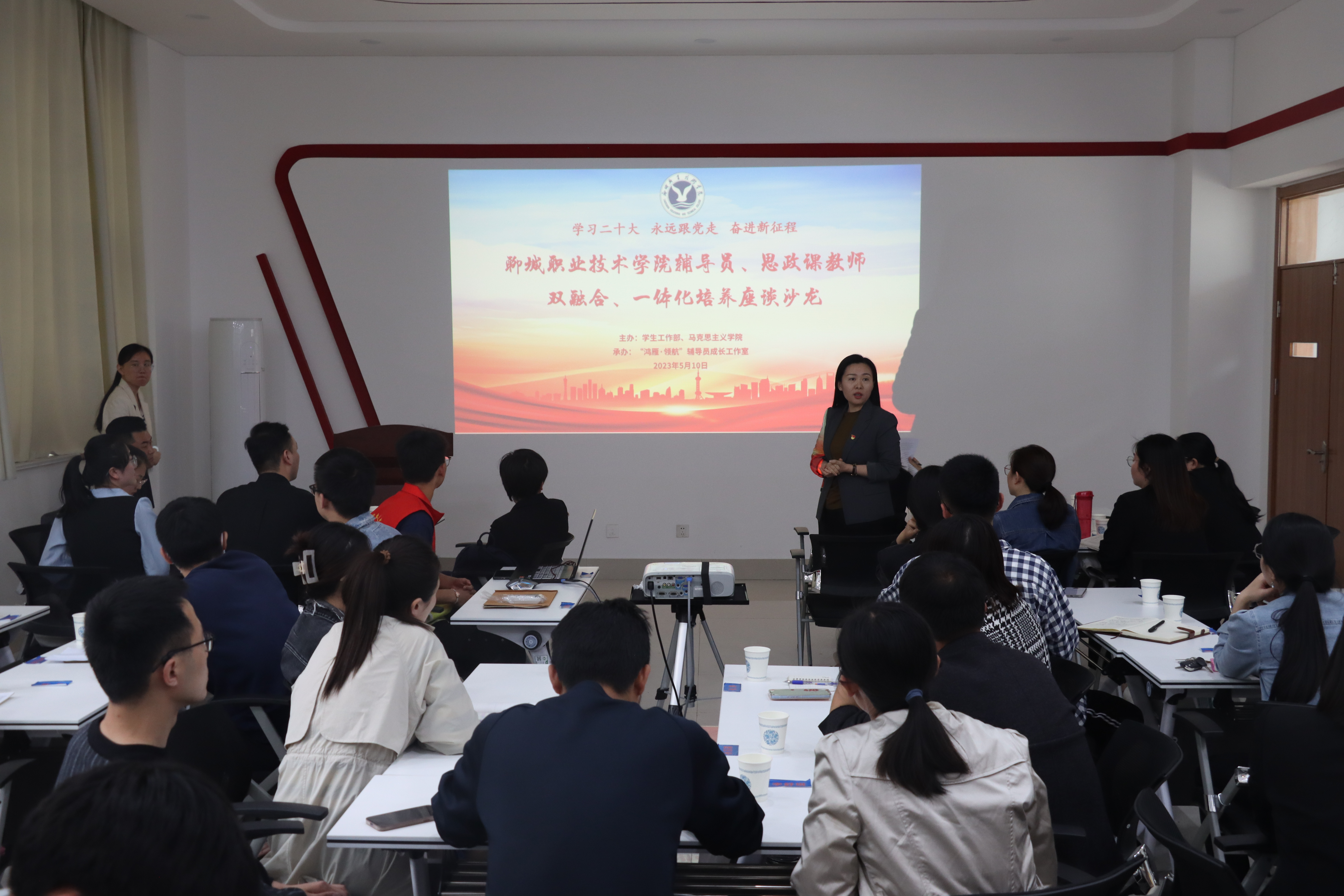 5月10日,学生工作部、马克思主义学院组织举办第一期辅导员、思政课教师双融合、一体化培养主题沙龙,50名思政课教师、辅导员代表参加。