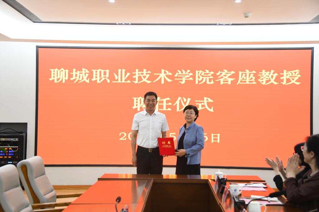 5月16日,聊城职业技术学院举行客座教授聘任仪式,教育部全国高等学校体育教学指导委员会委员、中国大学生体育协会职业教育学校体育工作委员会秘书长、北京市大学生体育协会副主席、北京工业职业技术学院教授贾书申受聘为学院客座教授和基础部体育教育教学改革顾问。学校党委书记靳凤莲,党委副书记赵存吉,党委委员、副院长刘雪巍,党委委员、组织部部长葛序风出席。活动由赵存吉主持。